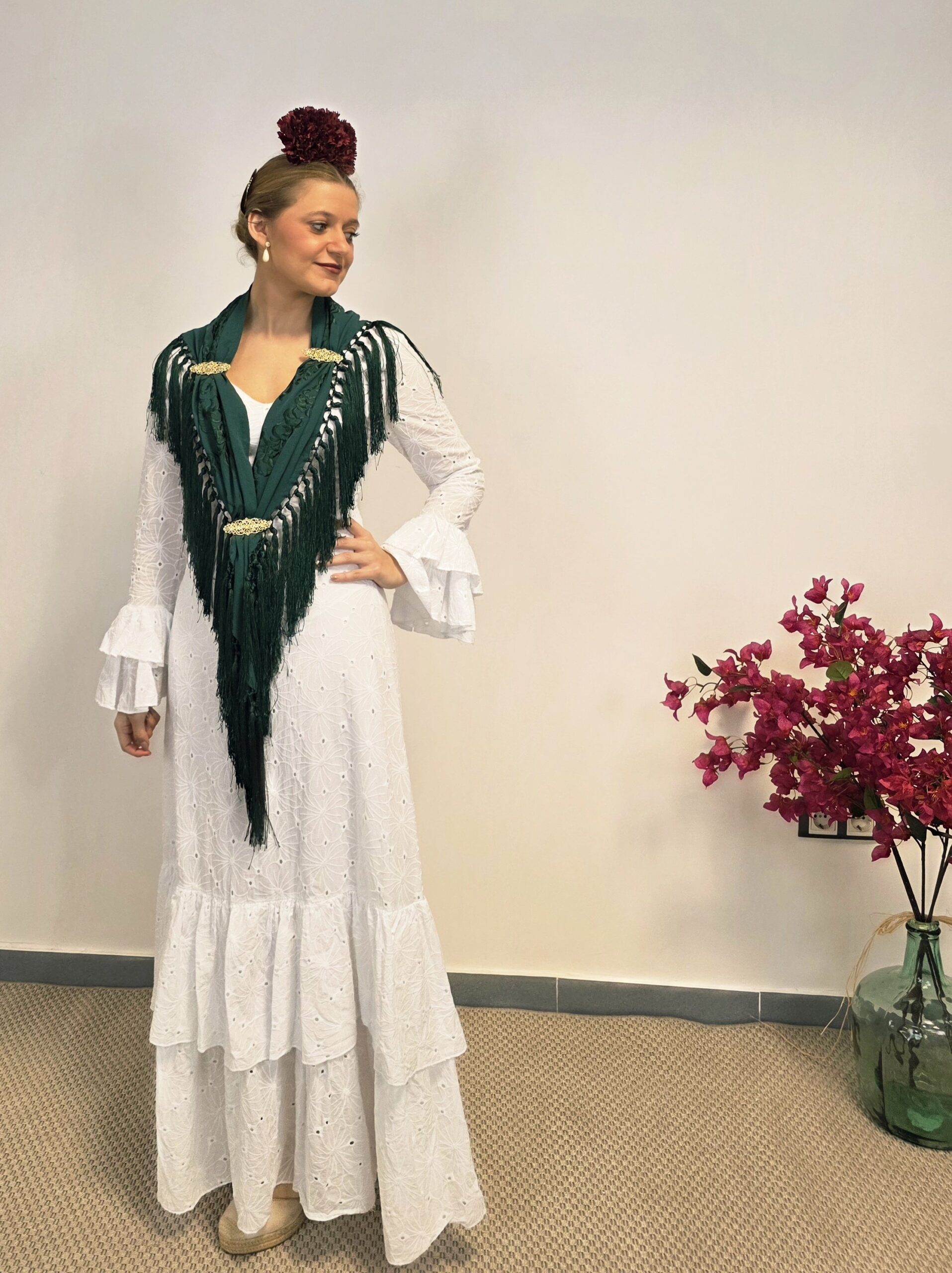 Traje de flamenca en tejido perforado blanco